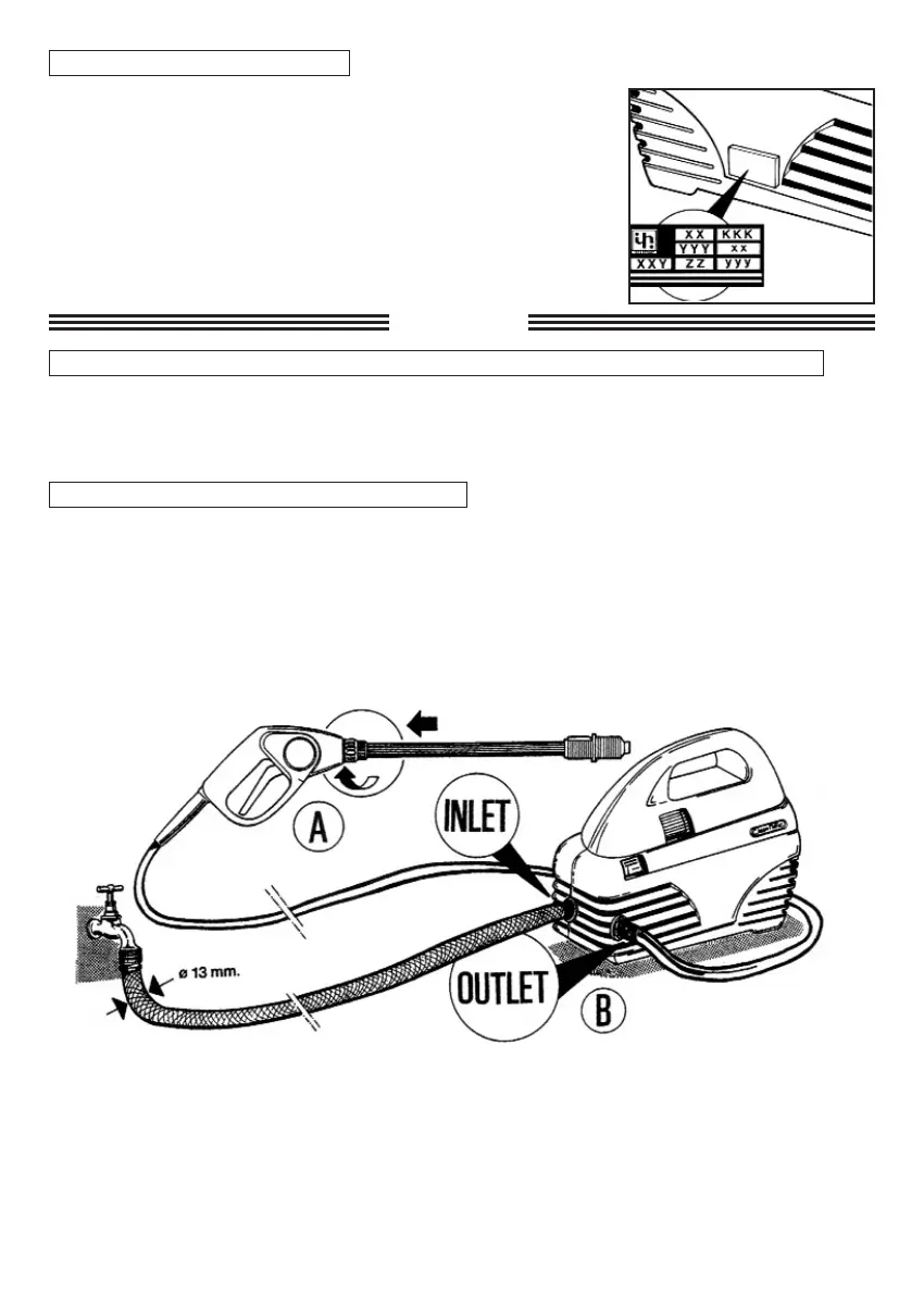 Подключить рукав высокого давления к выходному отверстию аппарата "OUTLET" (B) и