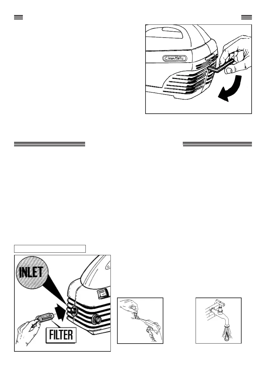 • Периодически проверять гидромойку, органы, находящиеся под давлением (шланг,