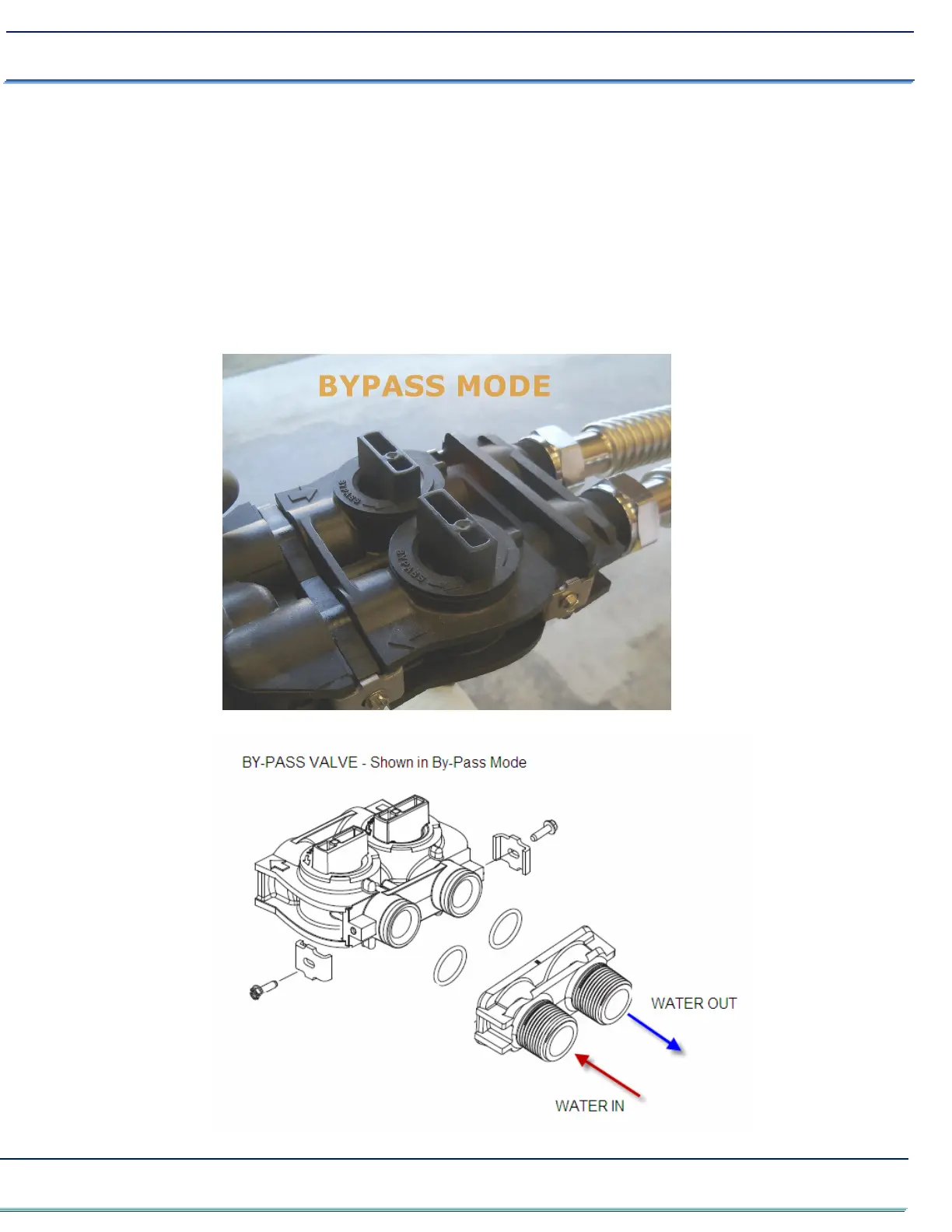 proper connection of in and out water piping. Leave in the BY-PASS position for now.