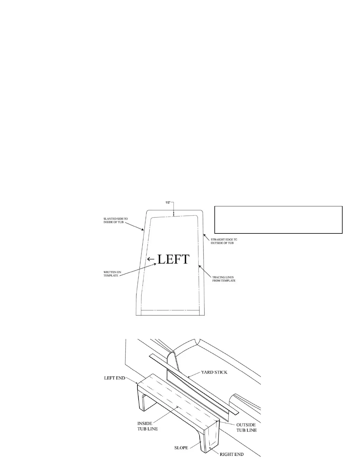 helpful to place an arrow on the template to indicate which direction is the inside of the tub.