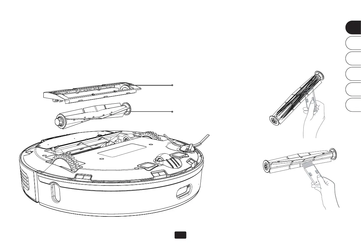 Turn the robot vacuum cleaner, press the le and right retaining clips and remove the roller brush cover.