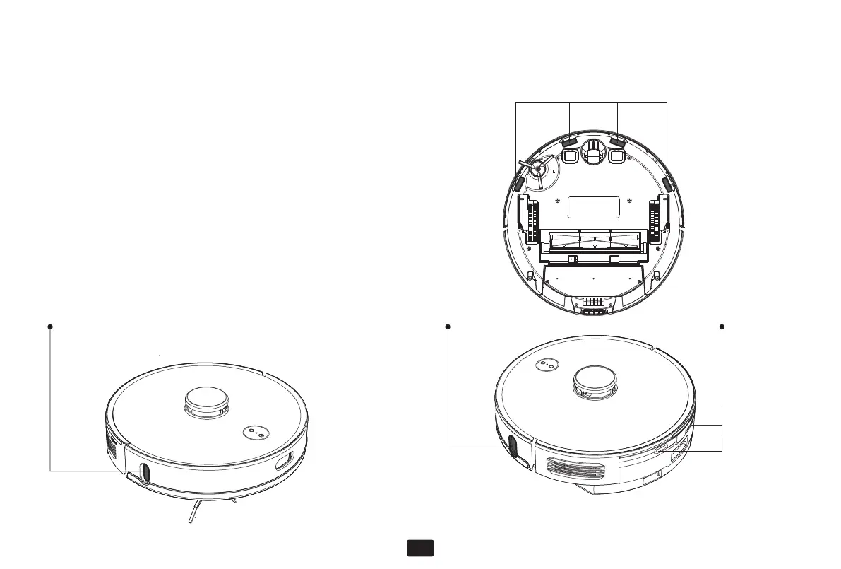  I 4 sensori di caduta sul lato inferiore dell'aspirapolvere robot.