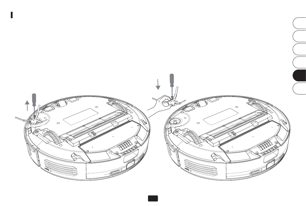  Aloje el tornillo del cepillo lateral con un destornillador y retire el cepillo lateral.