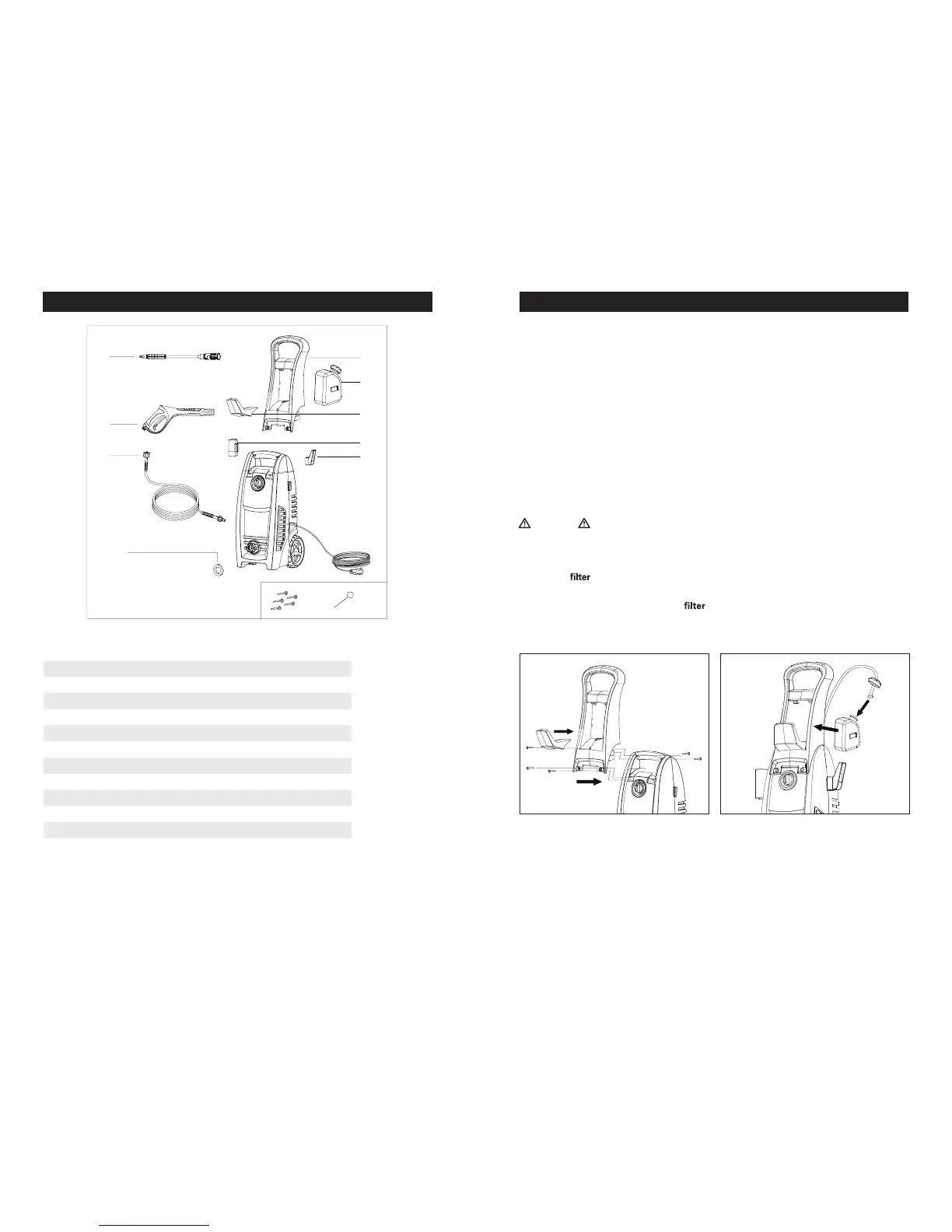 * Water filter come pre-attached on the water inlet, located on the front of the pressure washer.