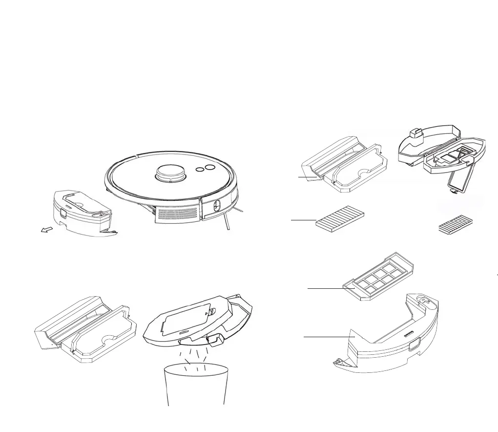 2. Vysuňte zásobník na nečistoty z nádobky a vysypte