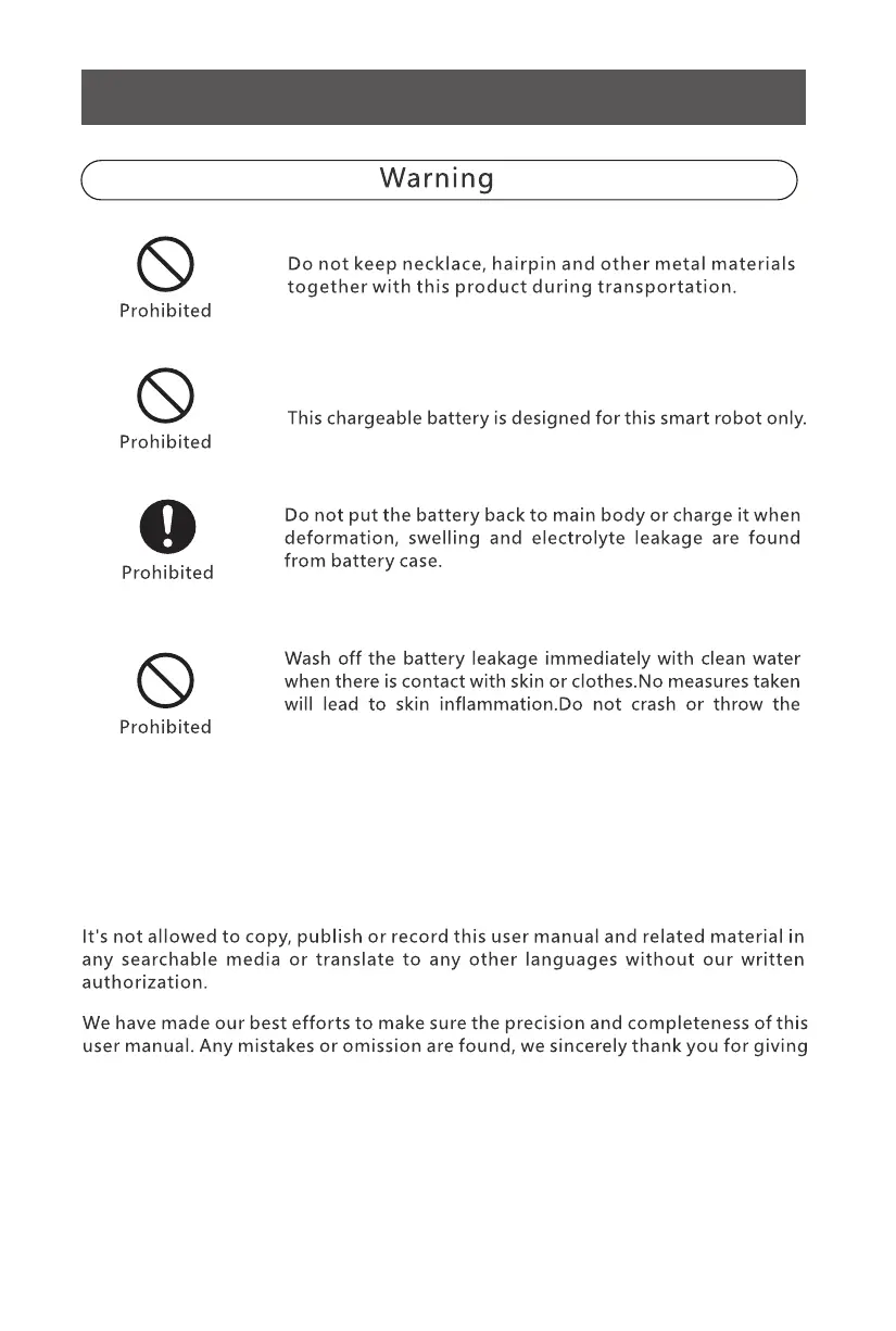 Cleanmate S 1000 - Safety Instructions; Transportation and Battery Warnings