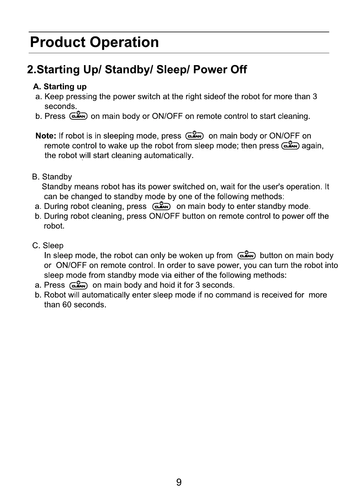 Cleanmate S 850 - Starting Up; Standby; Sleep; Power Off