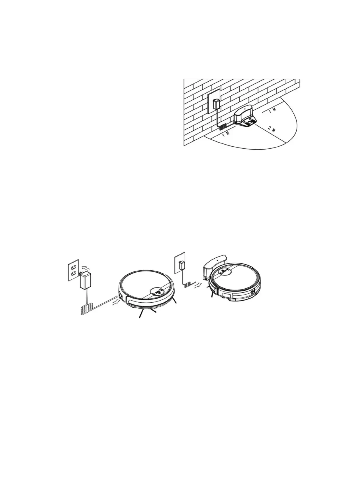 A. Plug one end of the adapter into the robot and the other end into the power socket as shown