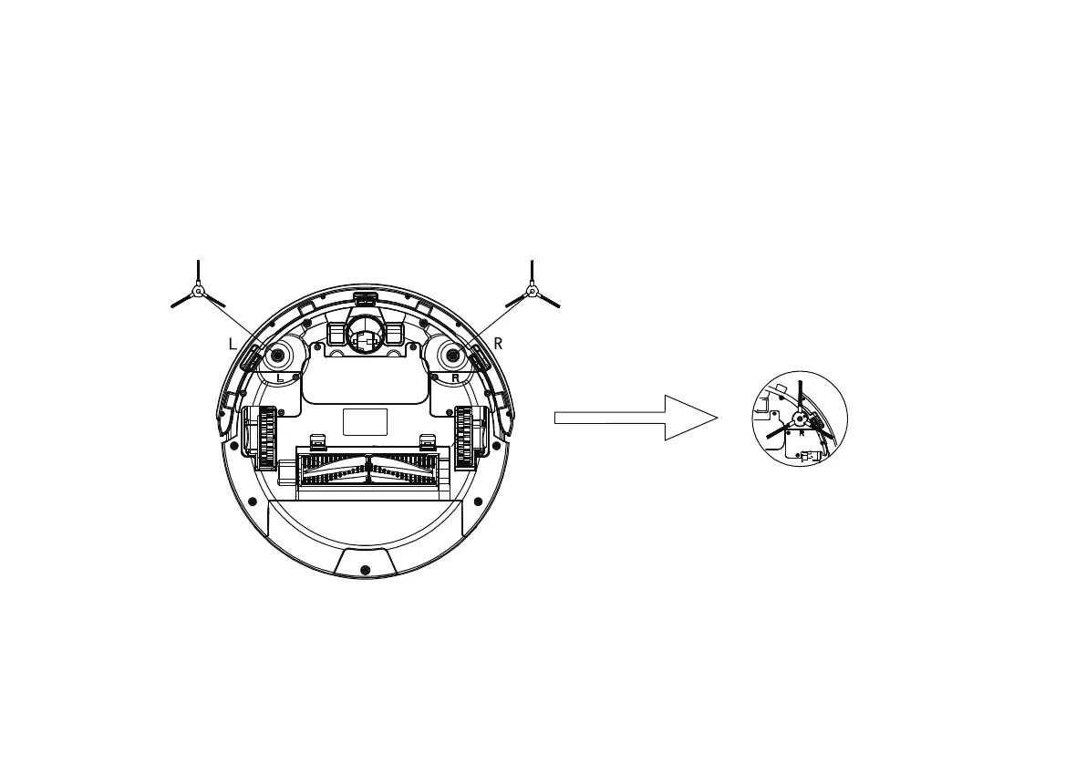 Install the sidebrushes L-and R on the current markning of the robot