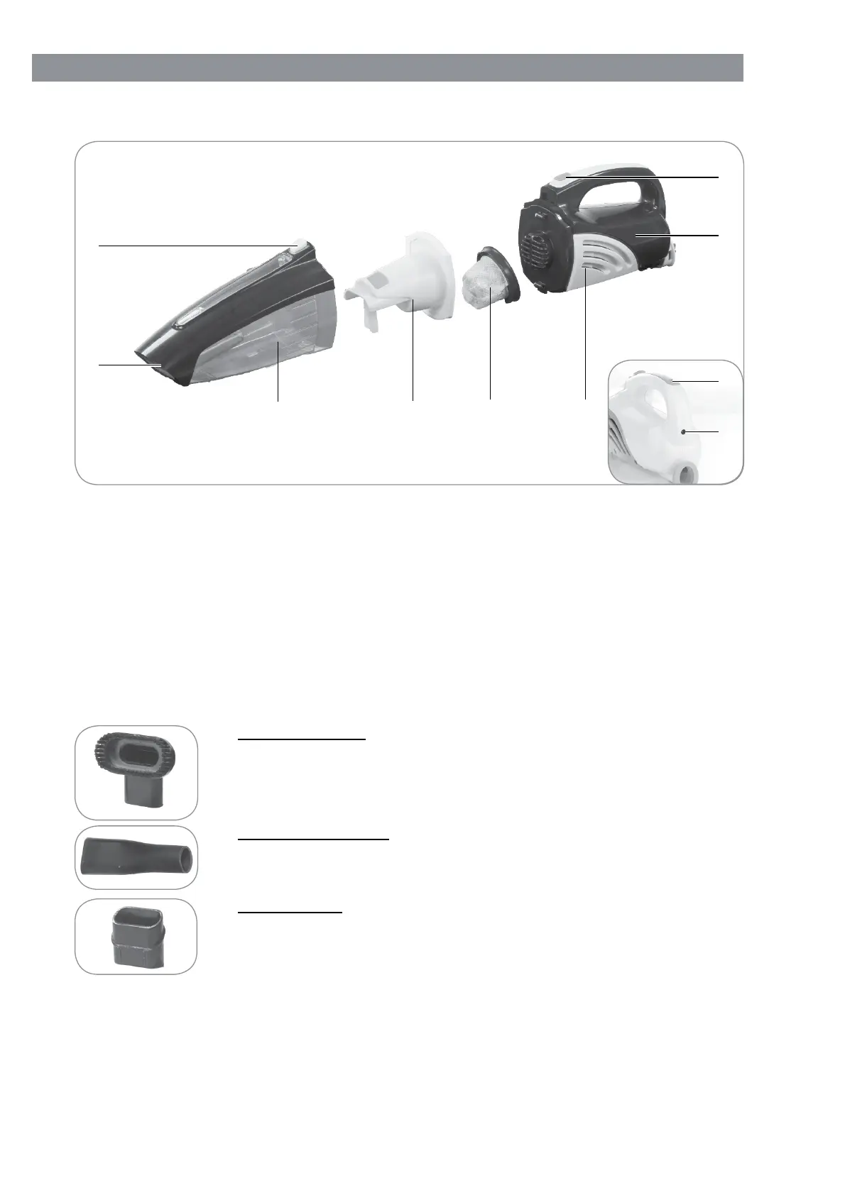 • Suceur à brosse : utilisez ce suceur à brosse pour dépoussiérer les