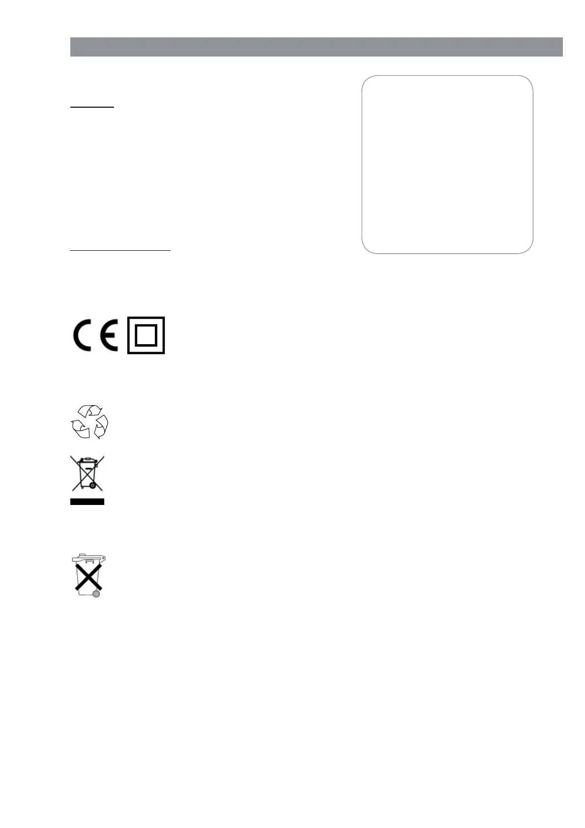 Les matériaux d’emballage sont recyclables. Débarrassez-vous de l’emballage
