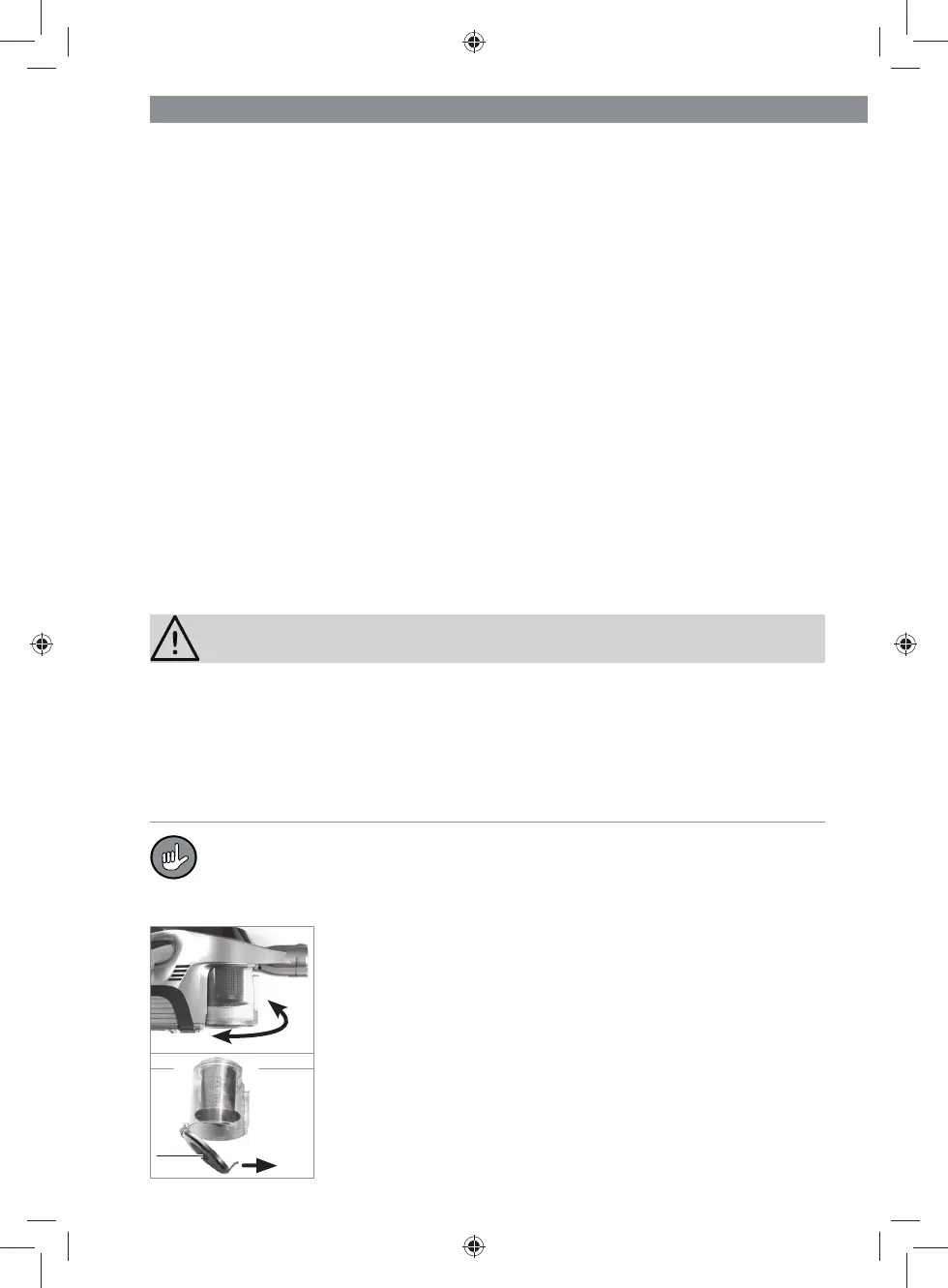 7. Für eine optimale Leistung des Gerätes den Staubbehälter (5) nach jeder Benutzung
