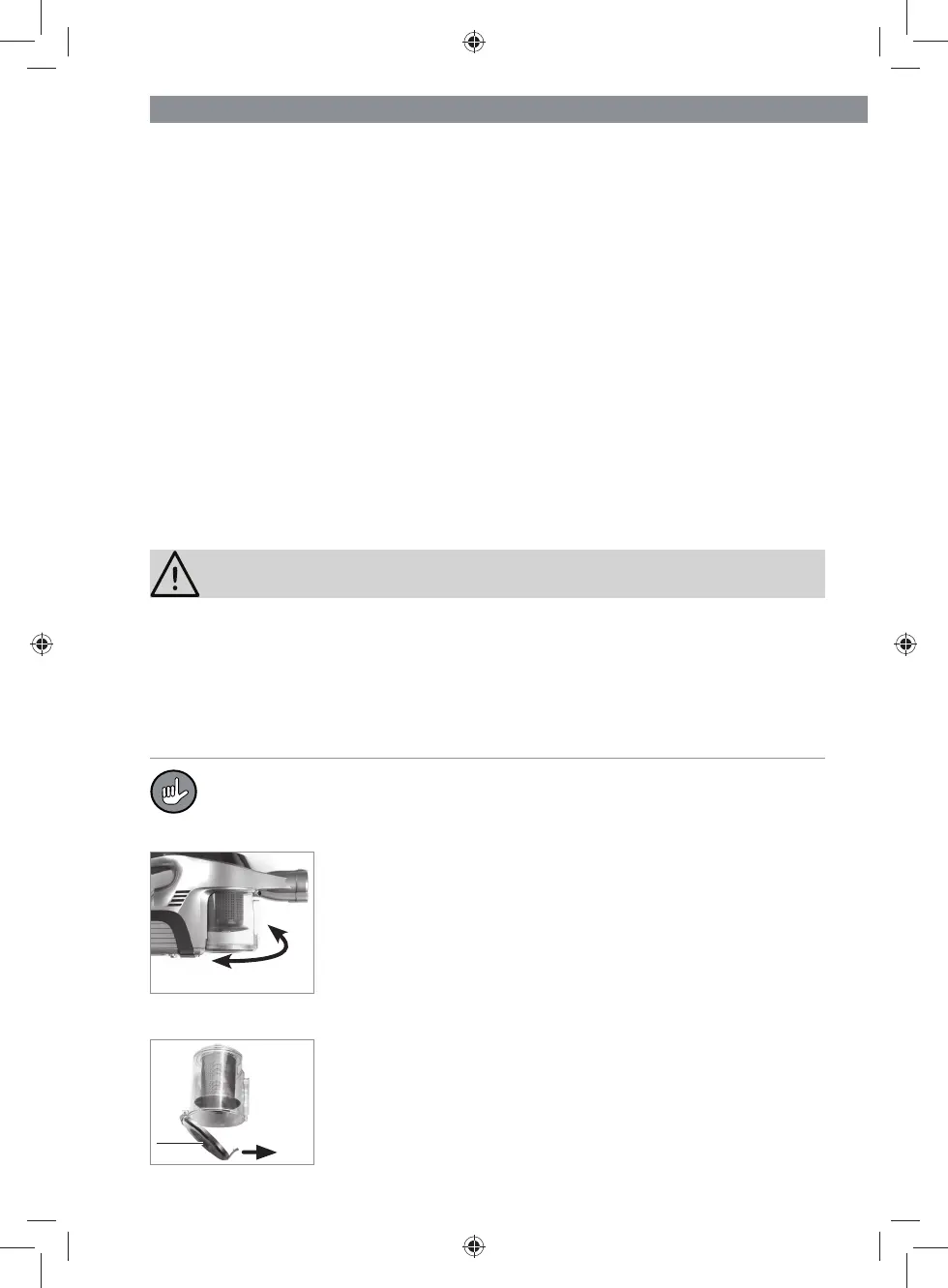 7. To ensure that the device operates optimally, empty and, if necessary, clean the dust
