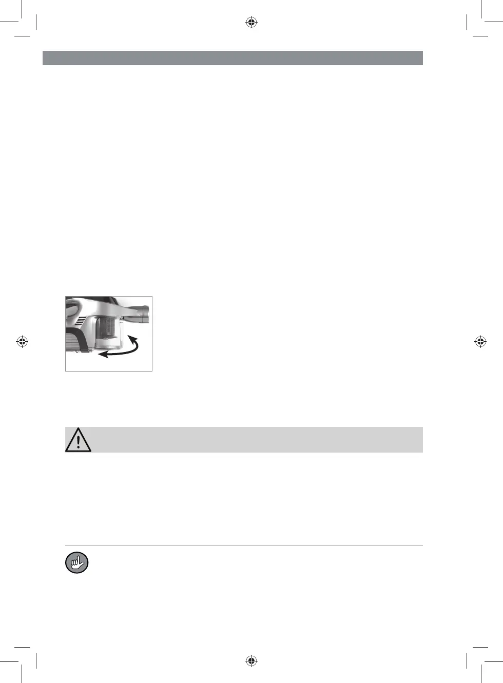 Tournez ensuite le réservoir à poussière pour le fi xer sur le
