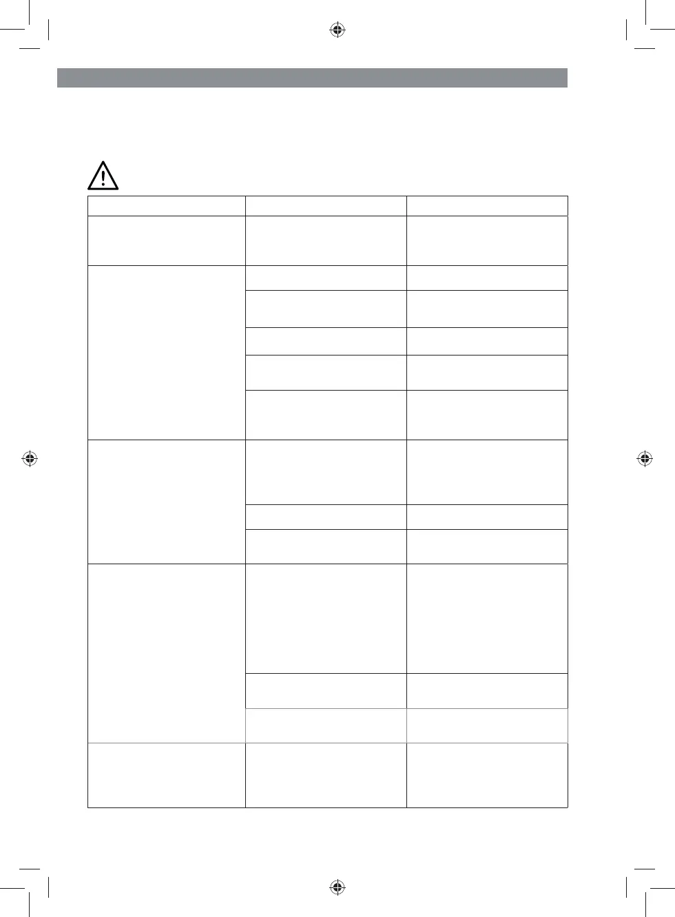 Problem Possible cause Solution