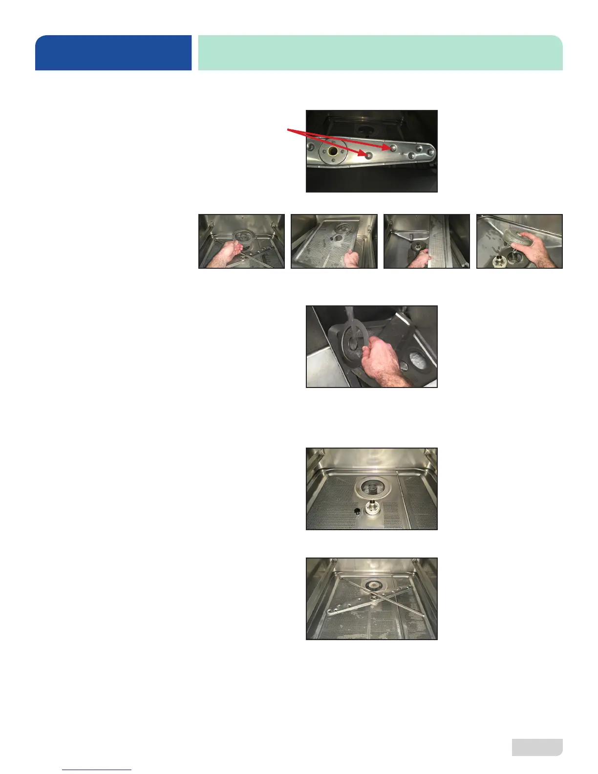 5. Verify the wash arms are not clogged. If so, clean nozzles with a brush and flush