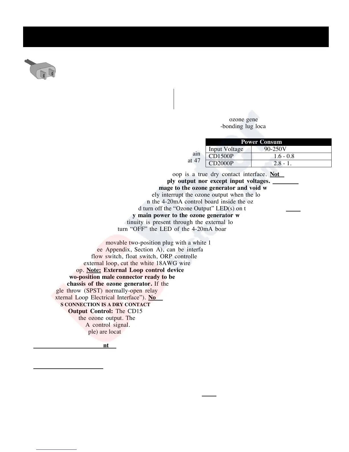 voltage to the external loop will cause damage to the ozone generator and void warranty. Under normal
