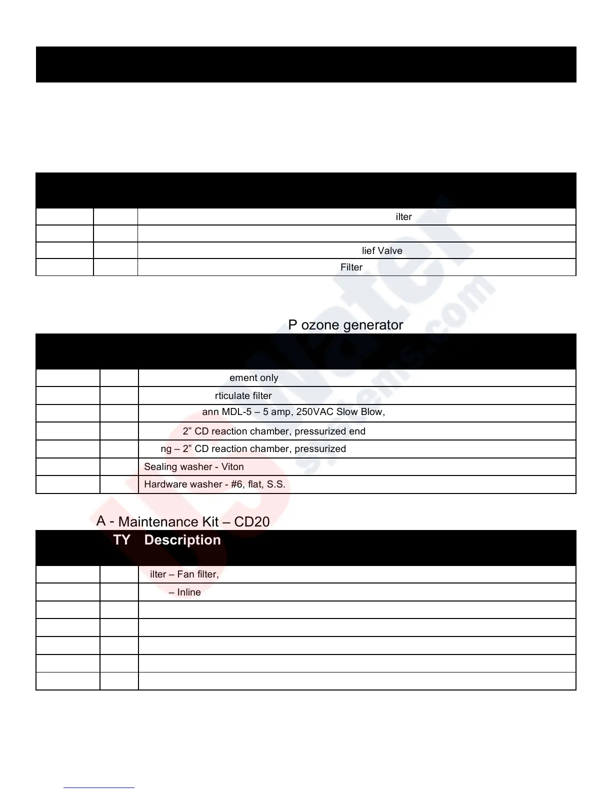 Maintenance Kit – CD2000P ozone generator