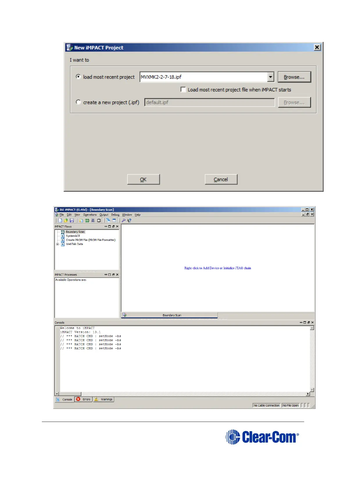 10. In the Boundary Scan window, right click in the display and select "Initilise Chain"