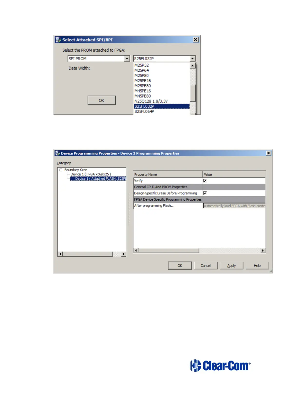 18. Pop up "Device Programming Properties" window, select "Device1(Attached Flash,