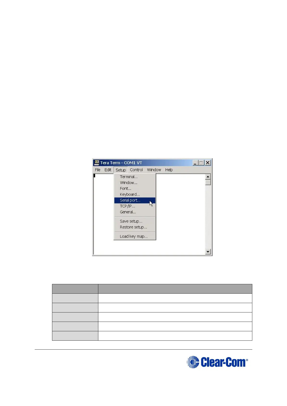 7. Start Tera Term. Open the Setup menu and select Serial Port….