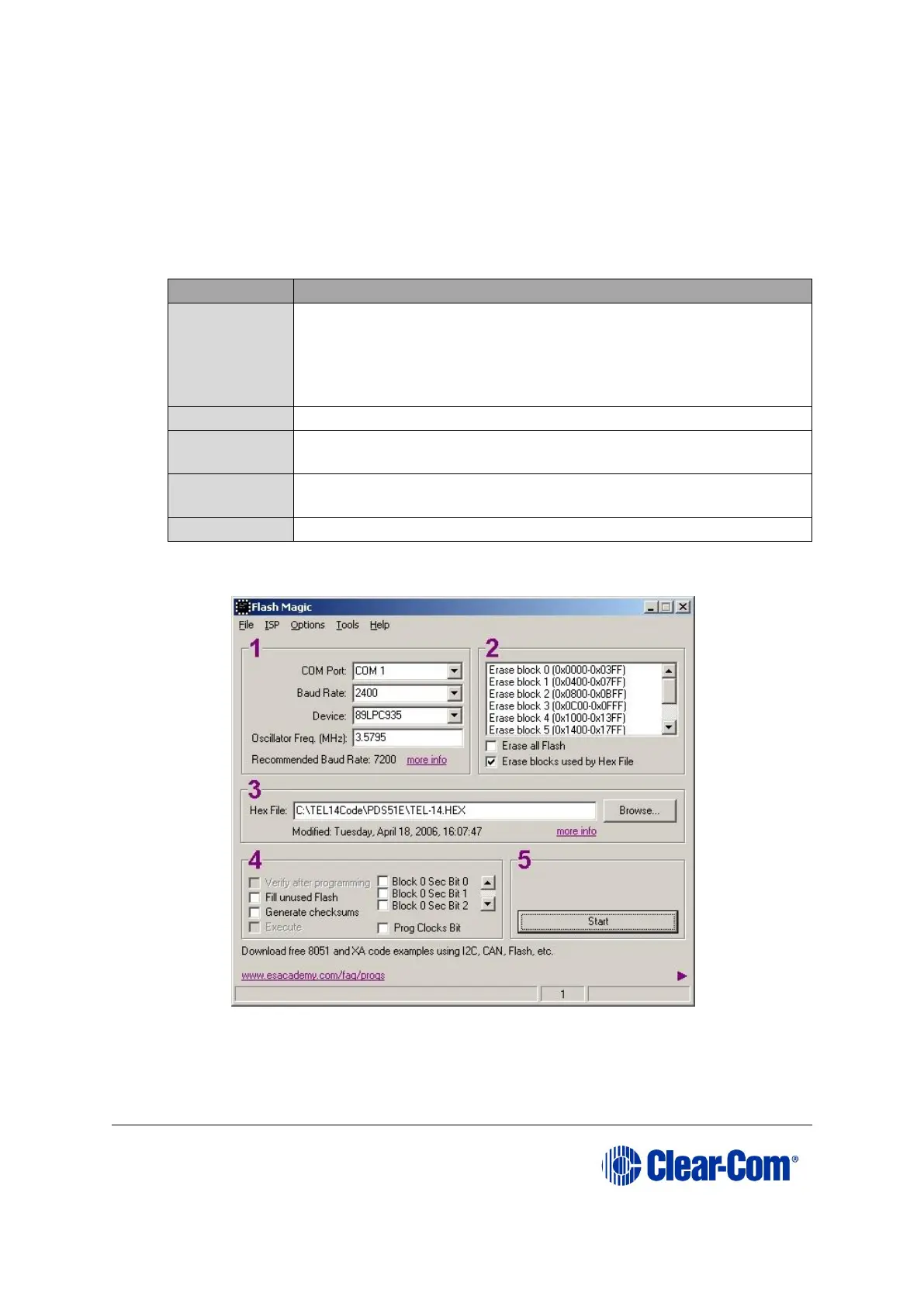 4. Start Flash Magic. Configure the following settings for the 5 purple numbered