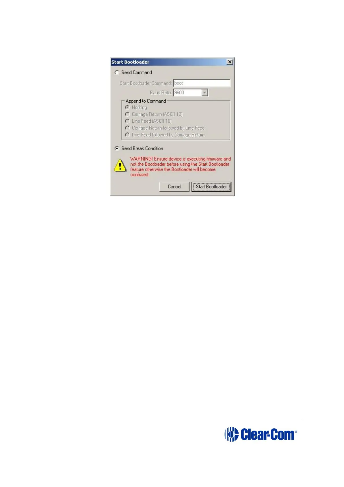 6. Ensure that Send Break Condition is checked, then press Start Bootloader.
