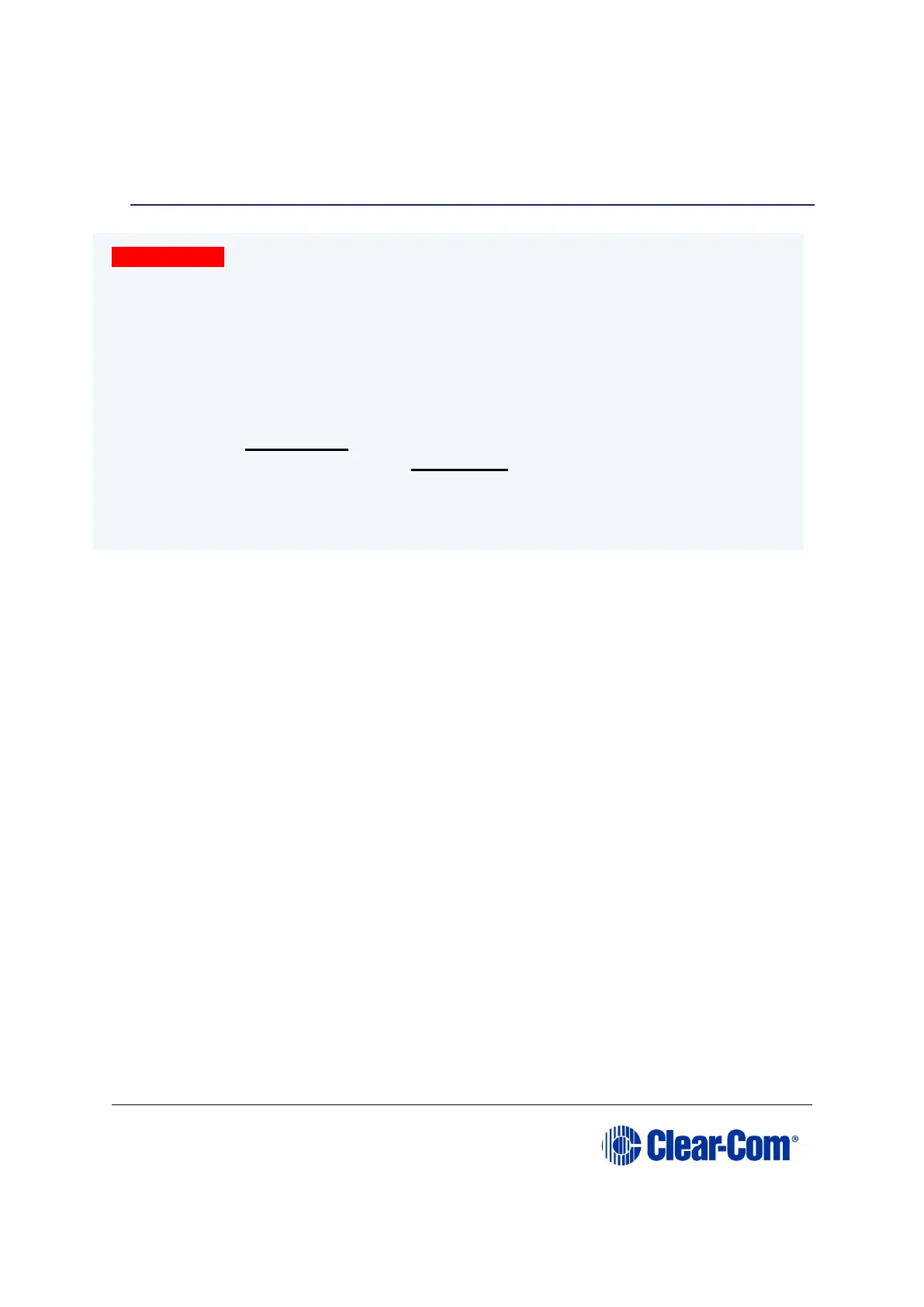 YOUR CLEAR-COM REPRESENTATIVE AND CANCEL THE INSTALLATION.