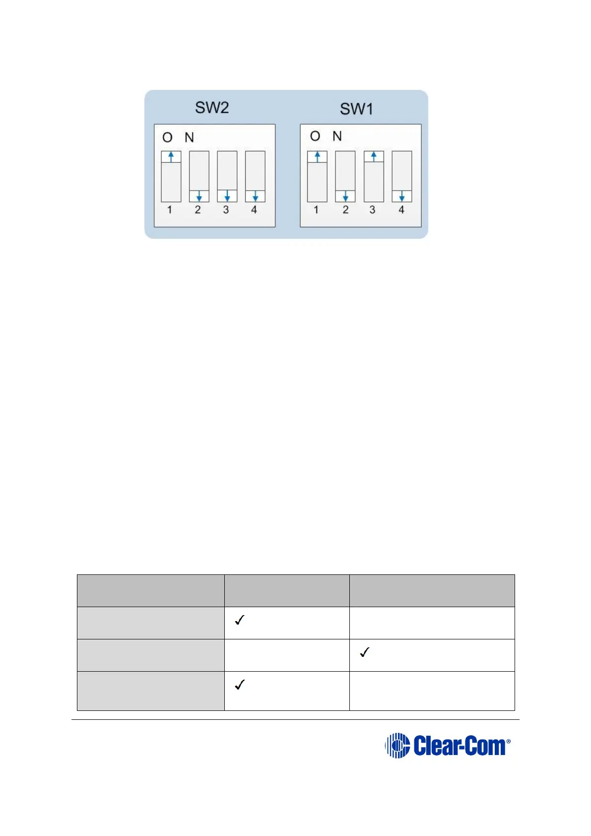Figure 6-12: DIP switches set to normal running mode (watchdogs enabled)
