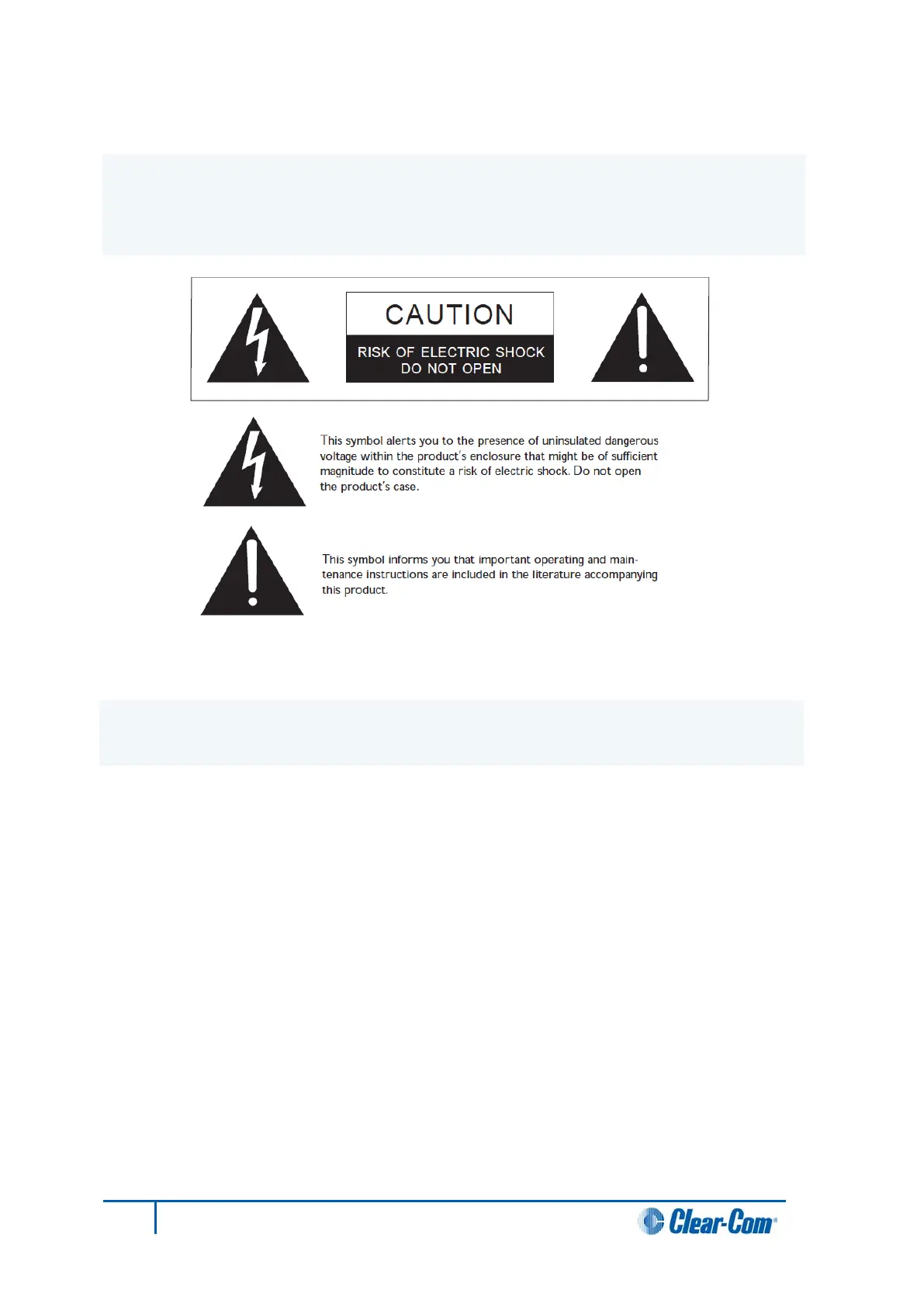 displayed on the apparatus and warn you of the potential danger of electric shock if the system is