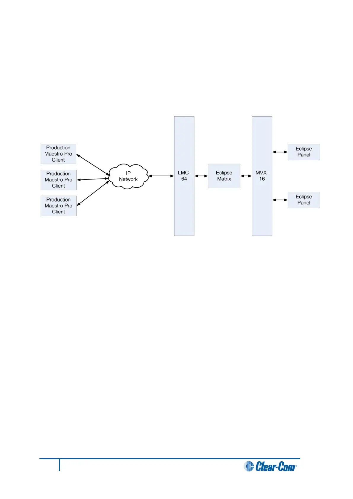 The LMC-64 interface broadcasts audio level data to Production Maestro Pro clients over an IP