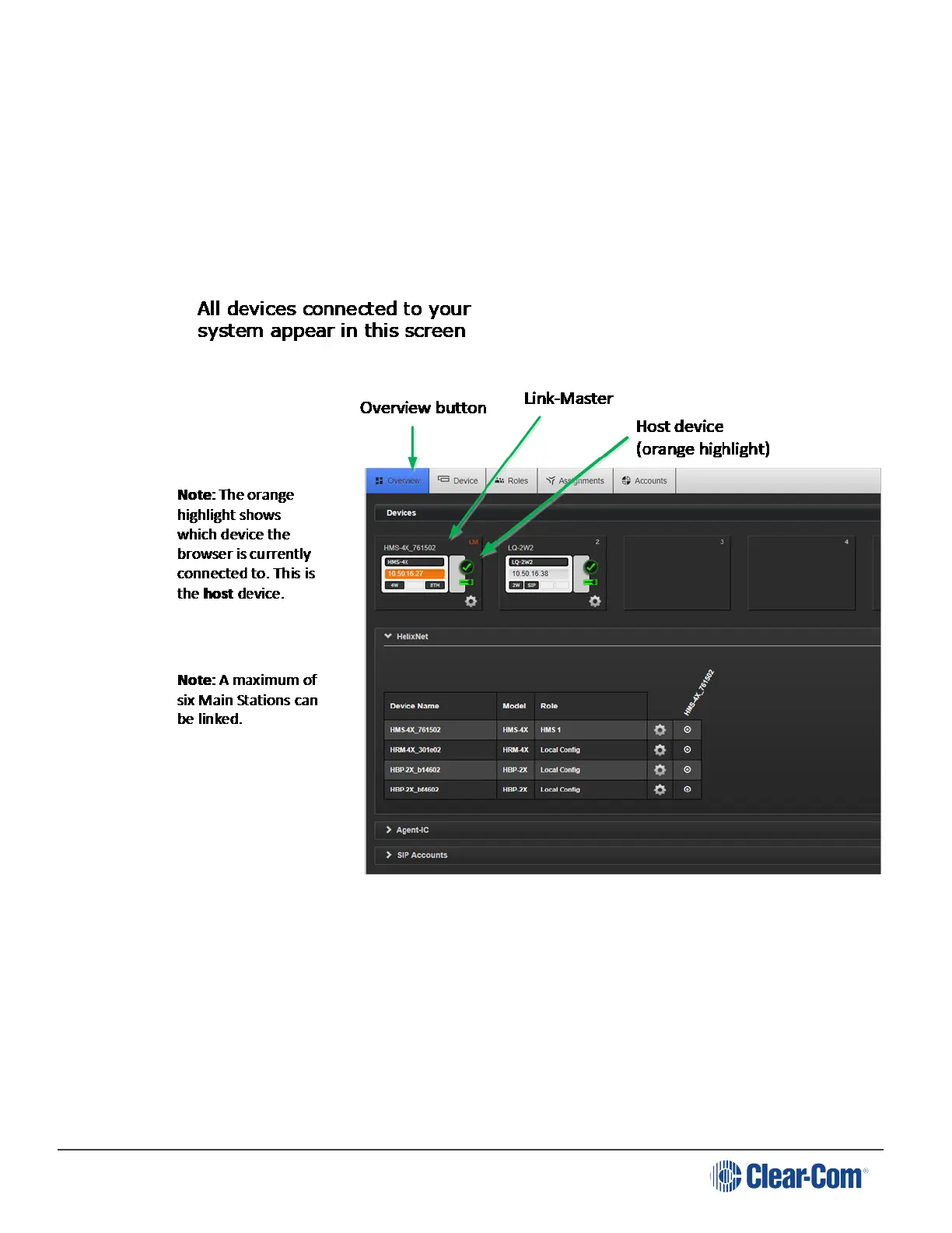 Overview page. Linked units can be configured either from the host device, or by proxy from this