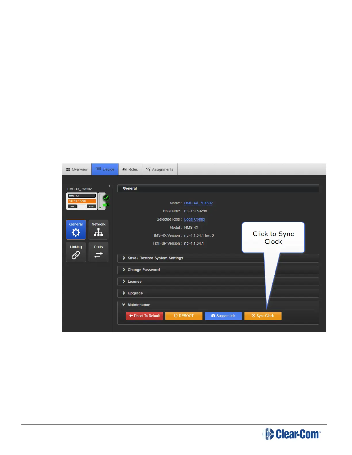 The Sync Time feature synchronizes the time clock on the Main Station with the clock on the