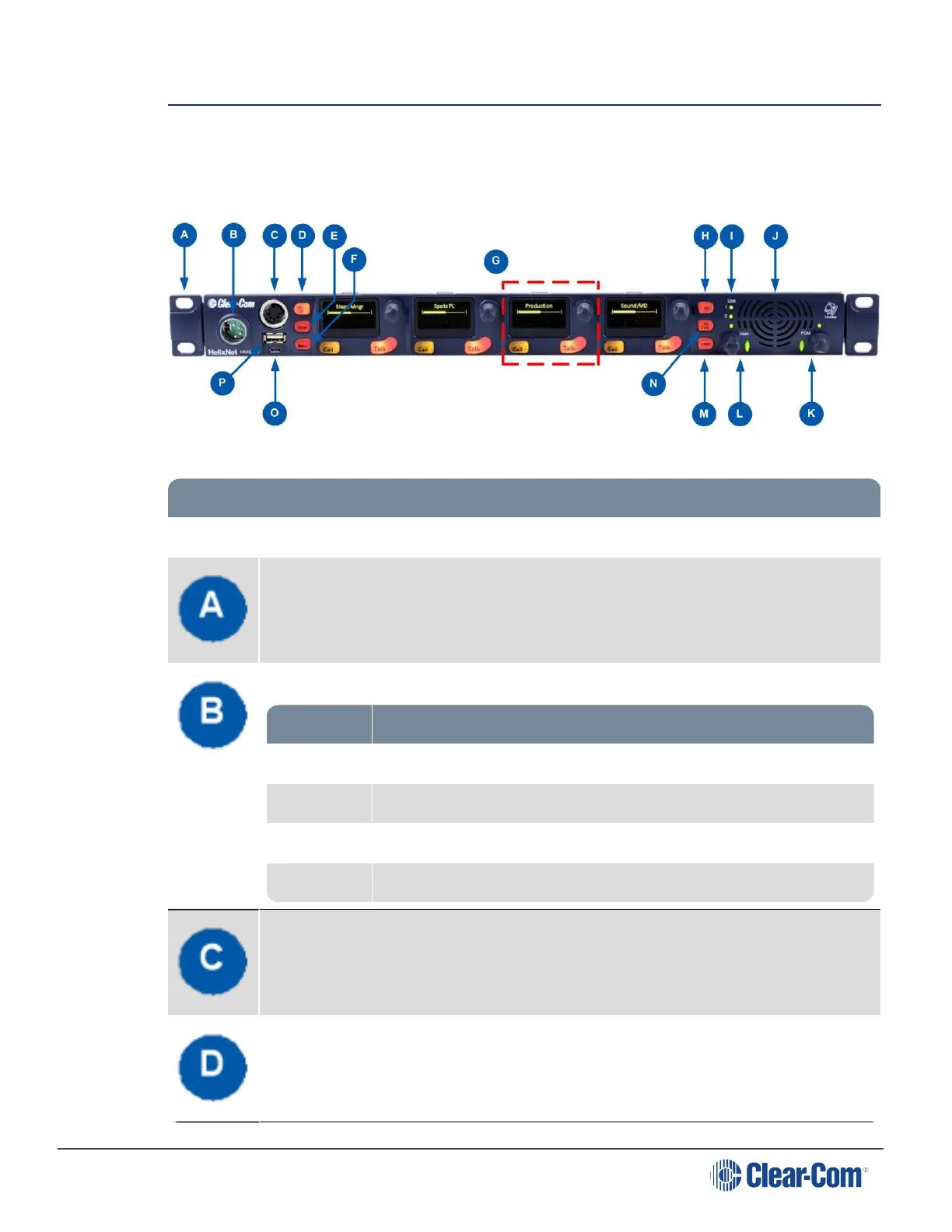 Clear-Com HelixNet Partyline - 2 Panels and Interfaces; Main StationRemote Station: Front Panel