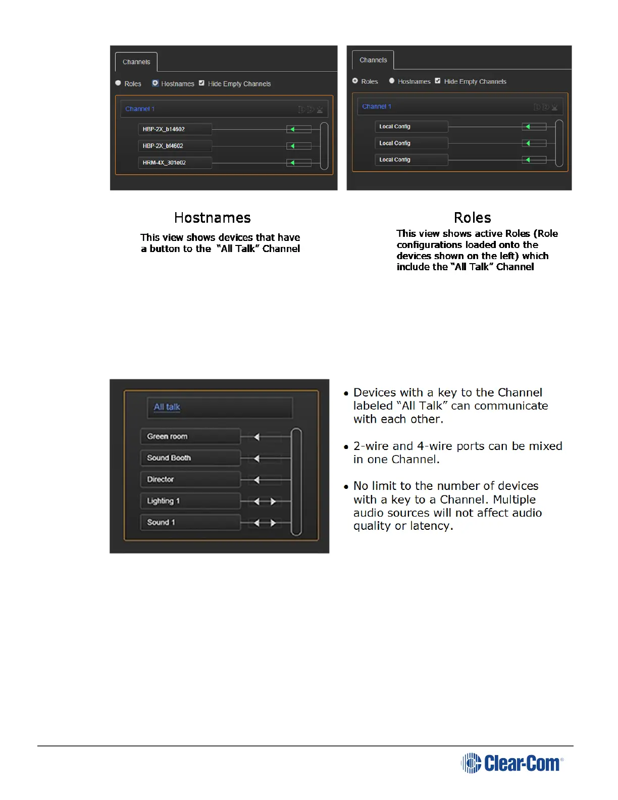 as virtual Partylines; audio sources assigned to a Channel will be able to talk and listen to all other