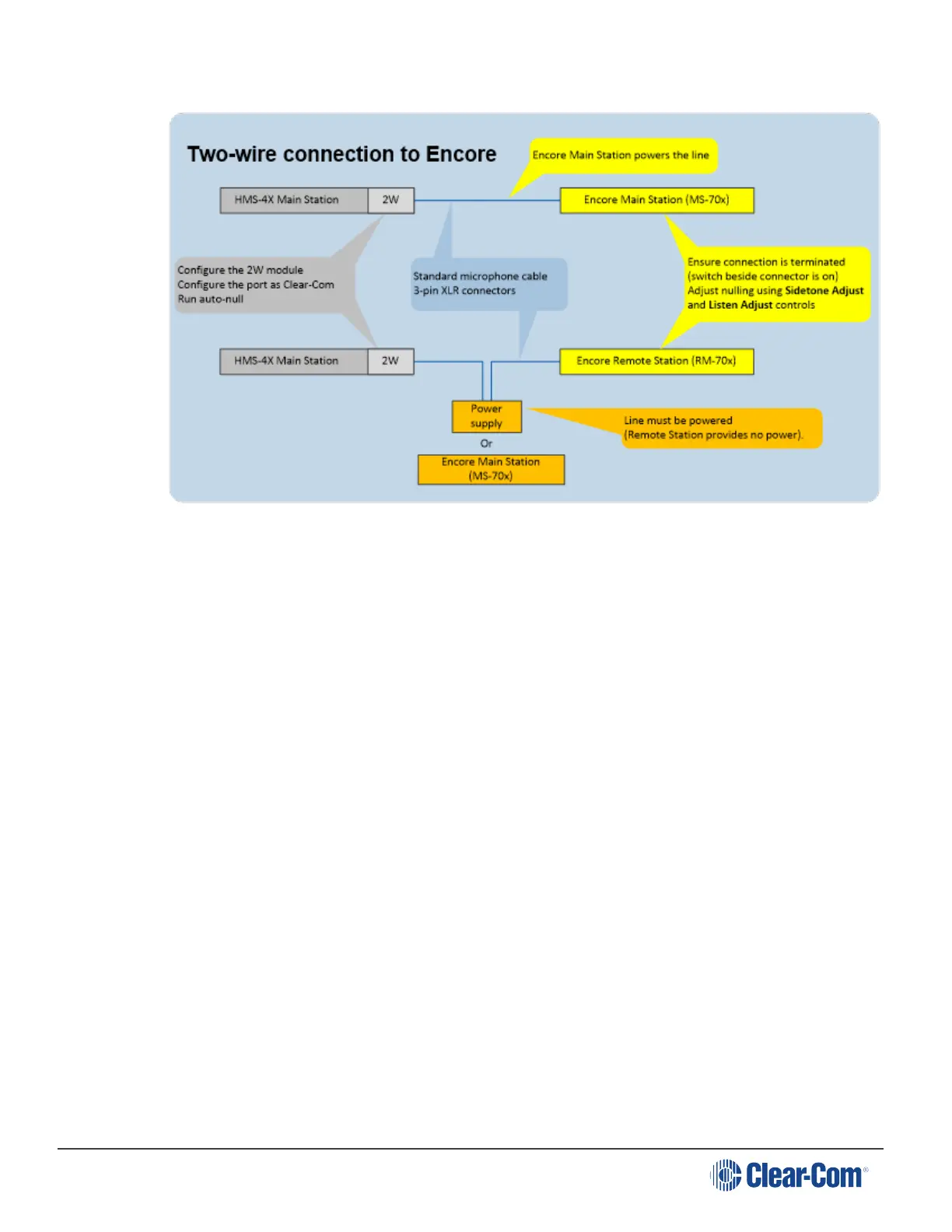 Note: Check that the two-wire module is configured for Clear-Com systems (the