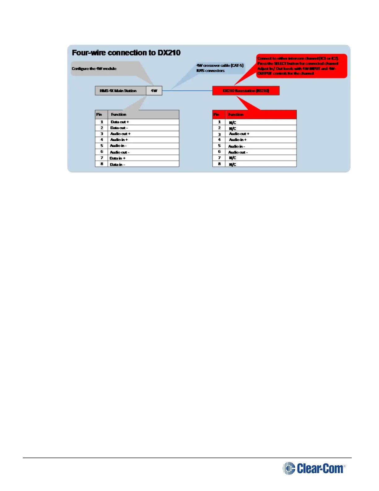 There is an RJ45 (four-wire) connector for each of the intercom Channels on the DX