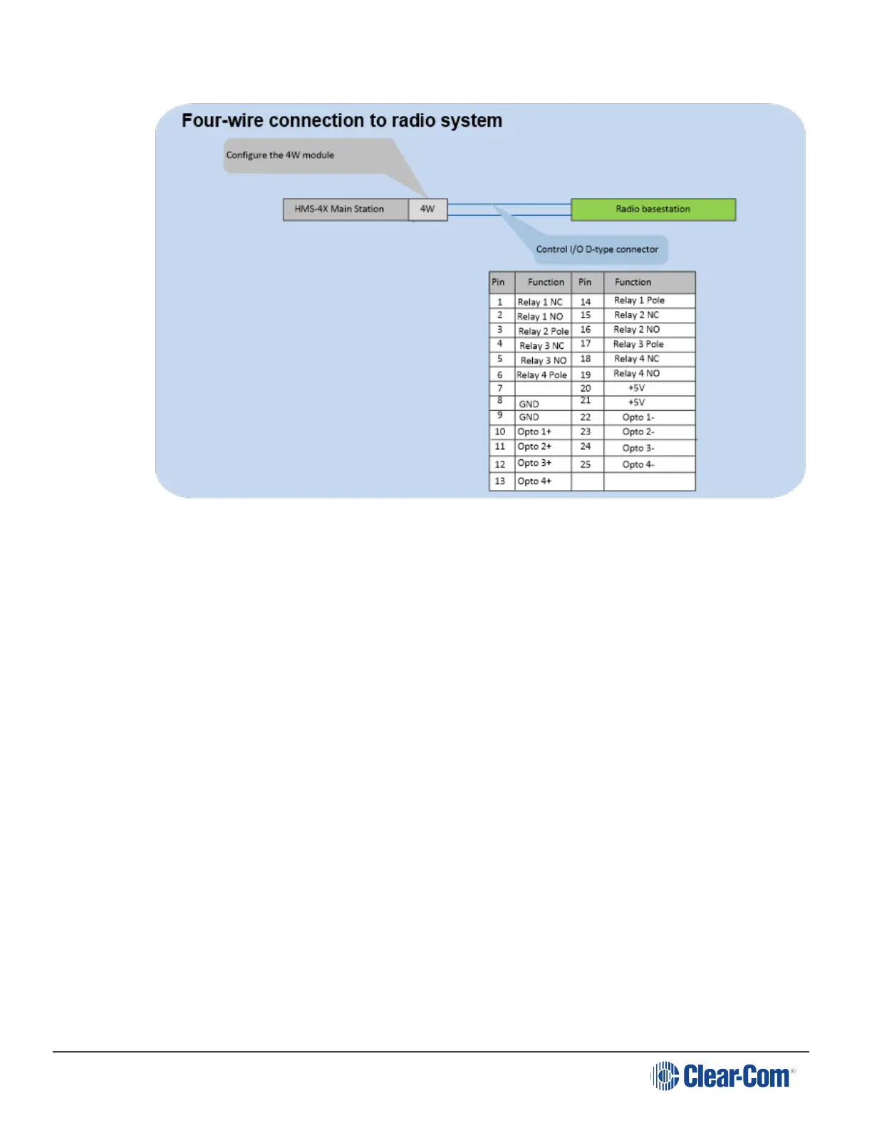 To connect the HelixNet Remote Station to a radio system using four-wire: