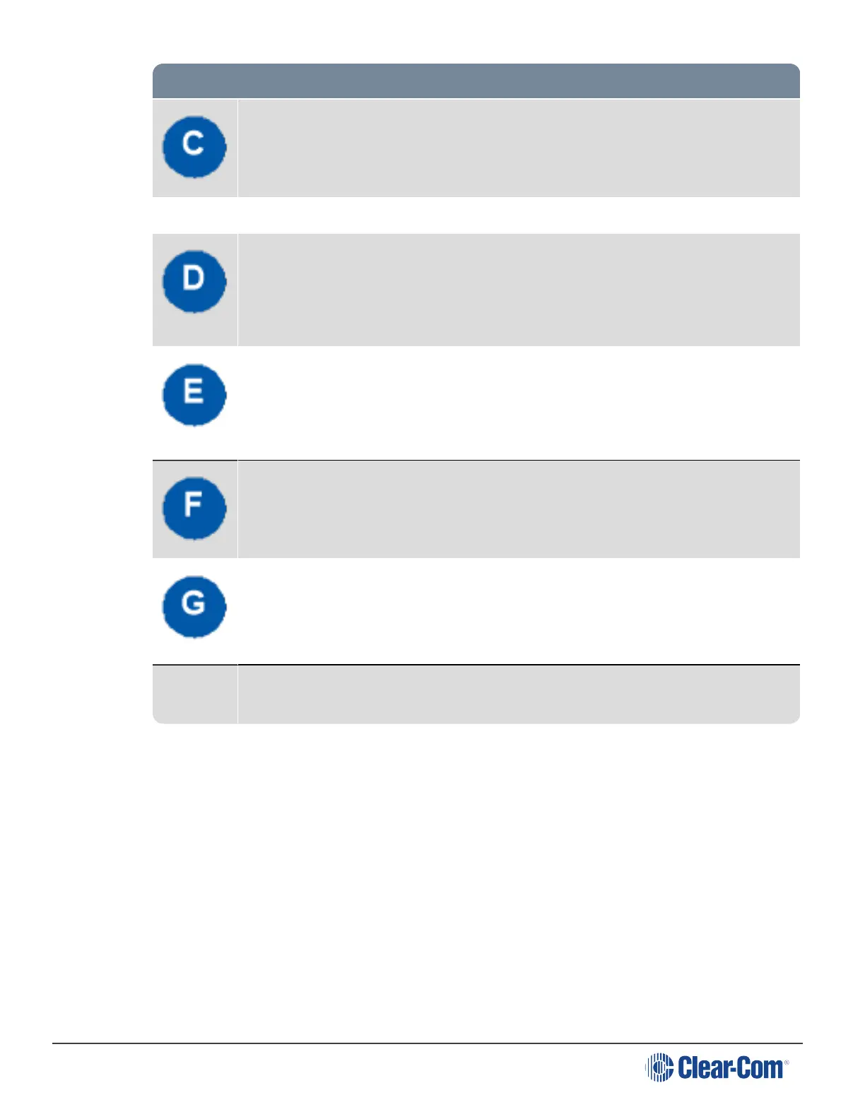 Note: The beltpack has two Keysets, each containing one Call button (E) and one