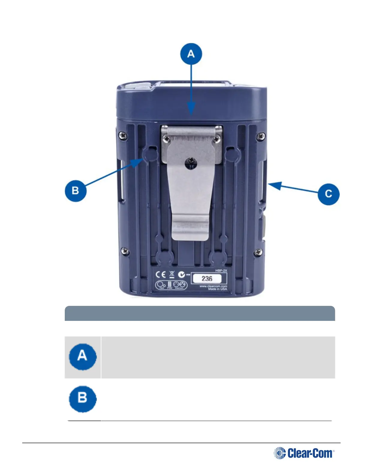 Feet (positions only). The beltpack can also be placed on a level surface (once