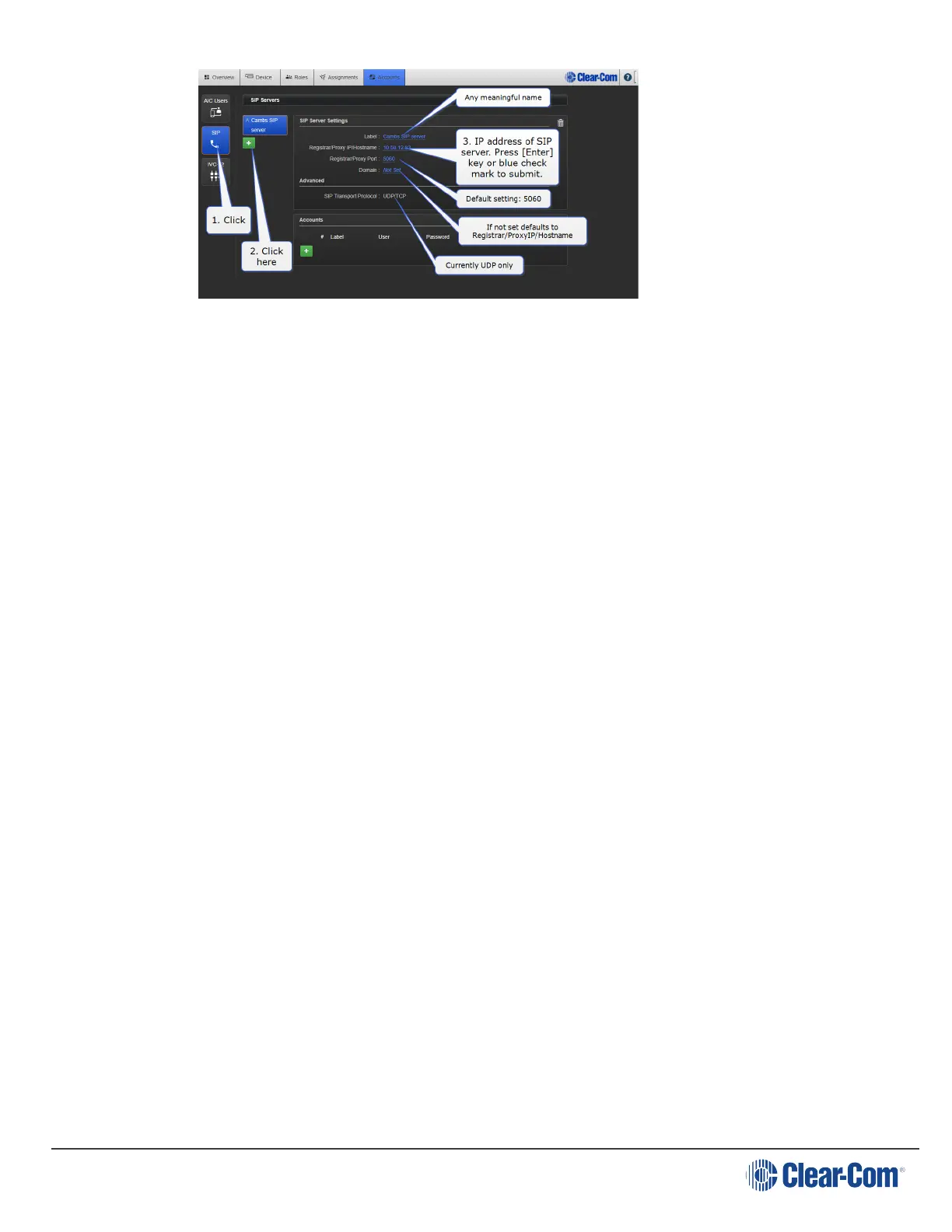 2. Register SIP clients. Give the LQ unit the Username and Password of an