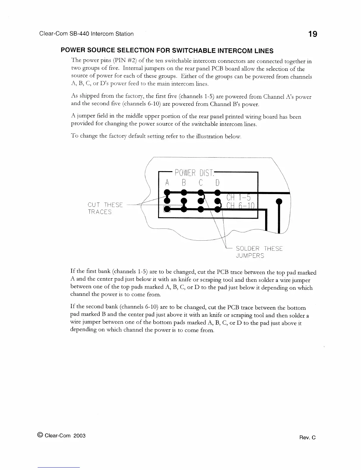Clear-Com SB-440 - Power Source and Jumper Settings