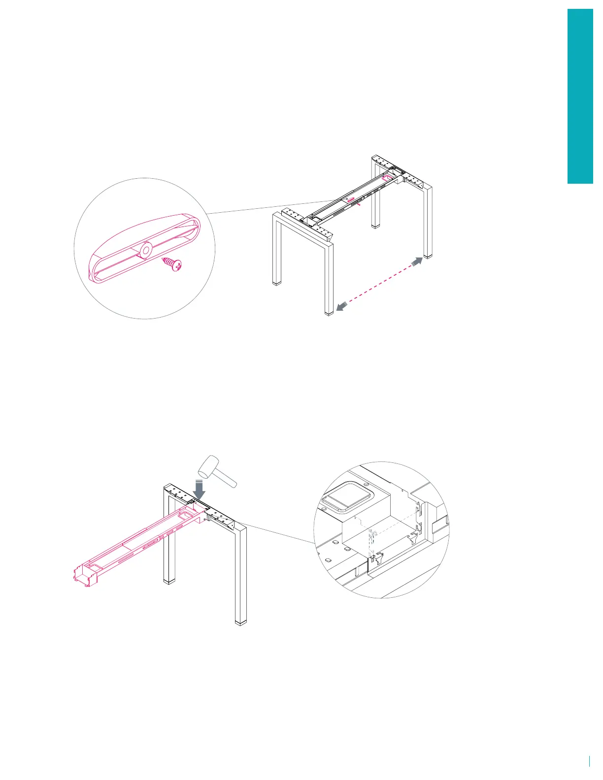 between beam and leg. Using a rubber mallet, hammer beam to lock in place.