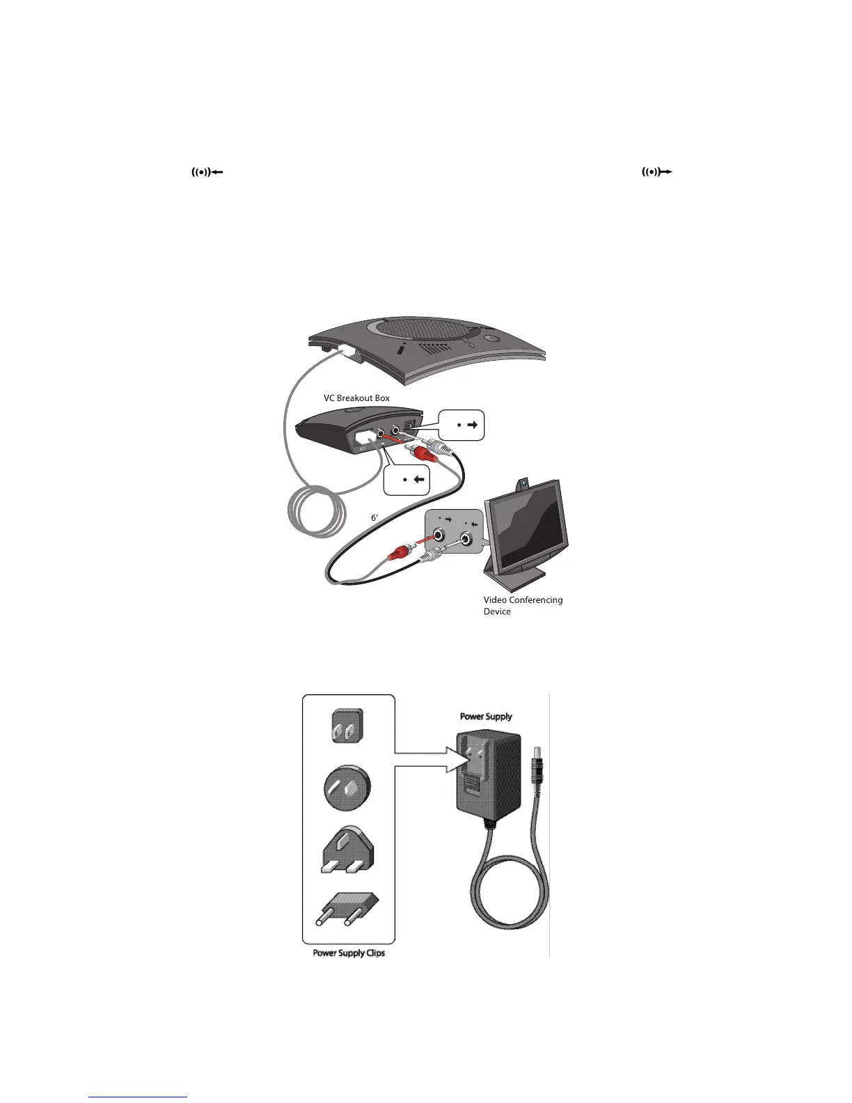 connectors go to the corresponding Audio Out ports. However, if your video conferencing device does not have left and