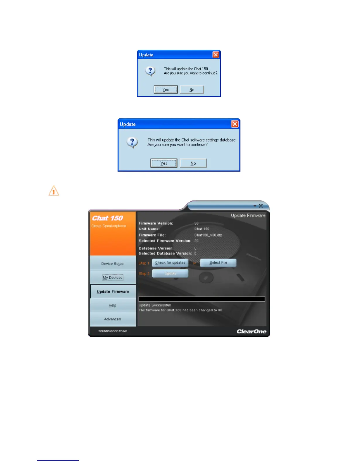 WARNING: Do not unplug the CHAT 150 while updates are in progress.