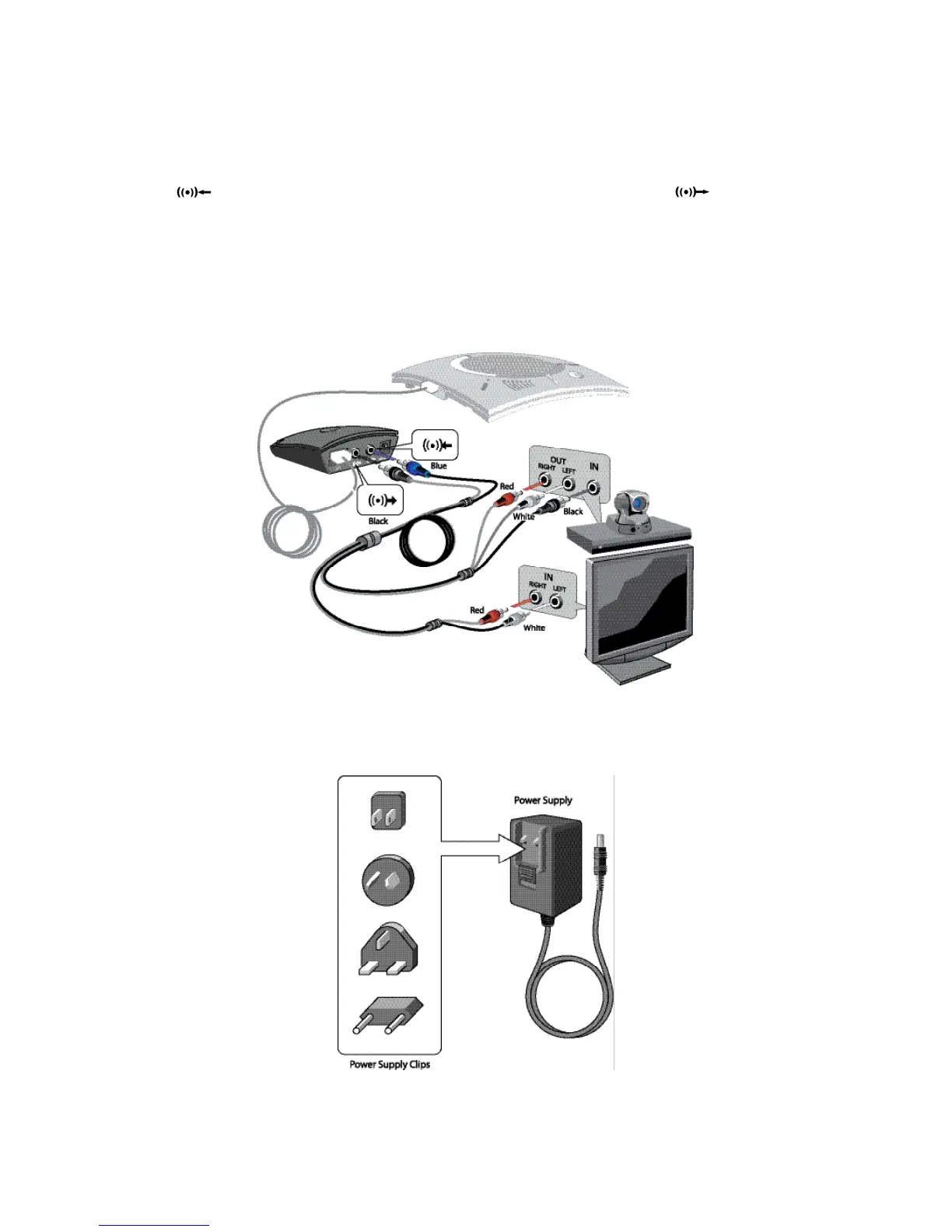 (identified by the icon), and the black connector goes to the Audio Out port (identified by the icon).