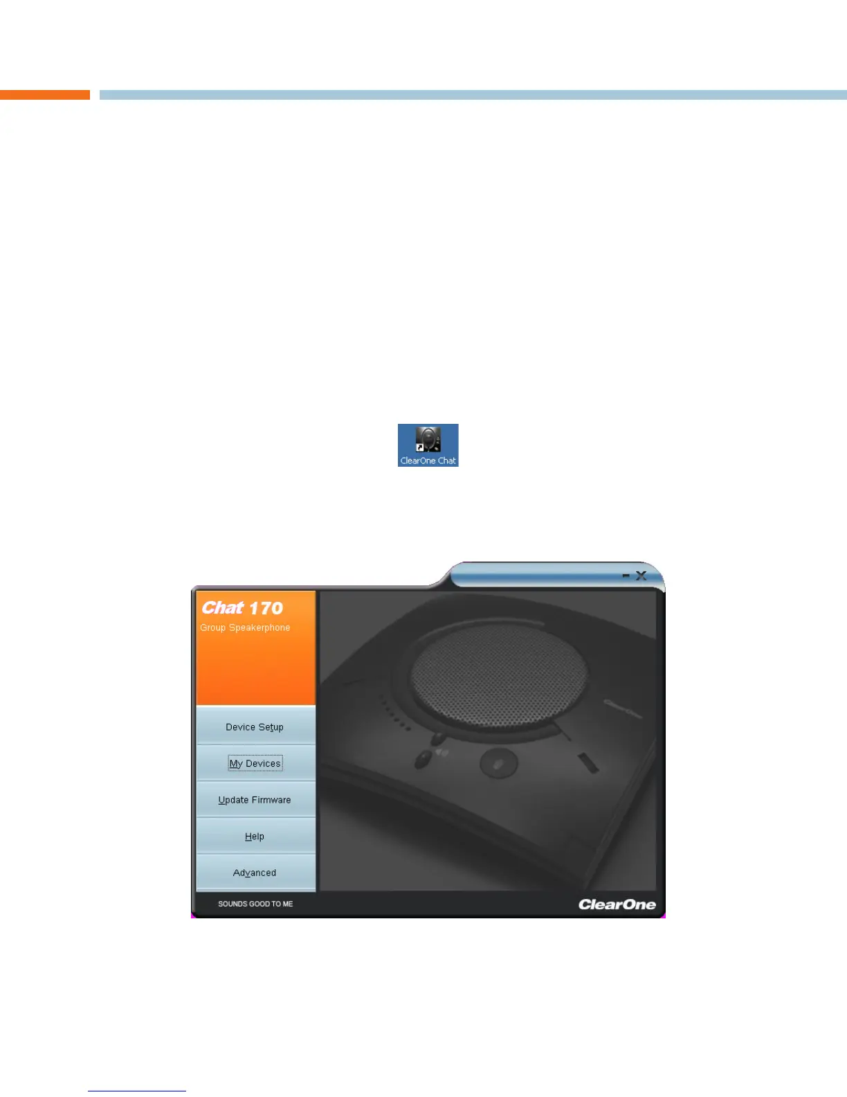 Start the CHAT software by double-clicking the ClearOne CHAT icon on your desktop, or by launching the applica-2.