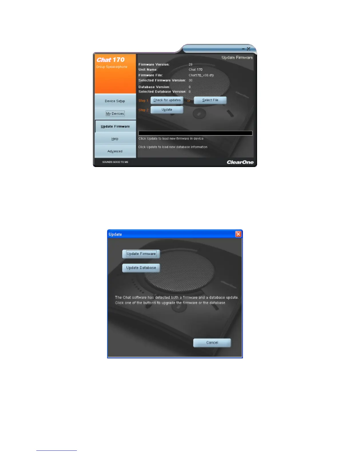 Click Update Database to update the device database only.