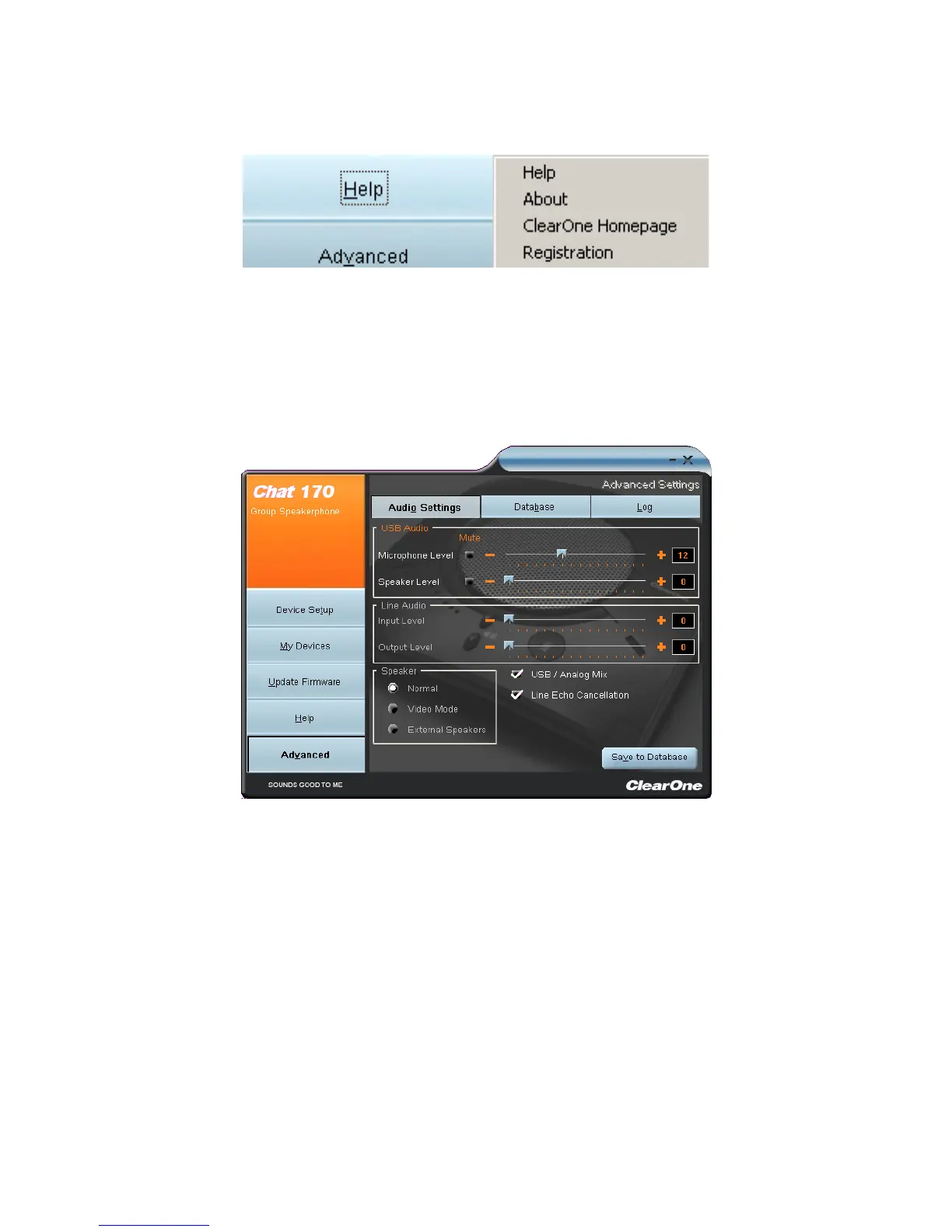 You can also use the Advanced screen to adjust audio settings for your CHAT 170, save your settings as a custom