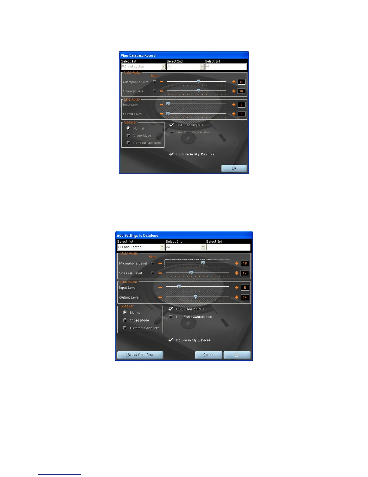 Adjust the audio settings or click 2. Upload from CHAT to upload and display the CHAT 170’s current settings.